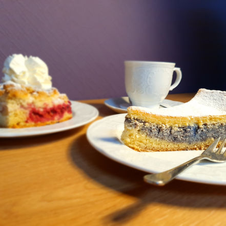 Naschkatzen haben nachmittags die Möglichkeit, in familiärer Atmosphäre bei einem Kaffee unsere hausgemachten Torten, Kuchen und Windbeutel aus eigener Küche zu genießen.